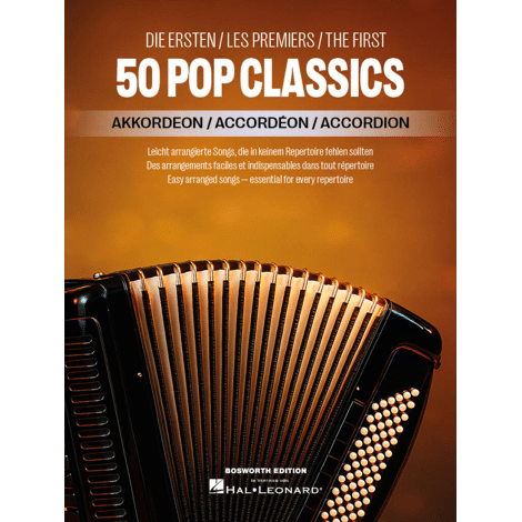 The First 50 Pop Classics brings together 50 timeless hits no modern accordion repertoire should be without. Every arrangement is specially created for beginners, making this collection perfect for both piano lessons and self-taught players. Organised from easy to intermediate, the pieces include tempo markings, chord symbols, fingerings, and full original lyrics. Suitable for students as early as their first or second year of study, this collection lets players confidently explore beloved classics like “My Heart Will Go On” (Celine Dion) and “Sailing” (Rod Stewarts), as well as recent hits such as “Love Story” (Taylor Swift) and “Bad Guy” (Billie Eilish). Whether for lessons, performances, or simply making music in your free time, The First 50 Pop Classics offers an uncomplicated, rewarding playing experience for every budding accordion player.