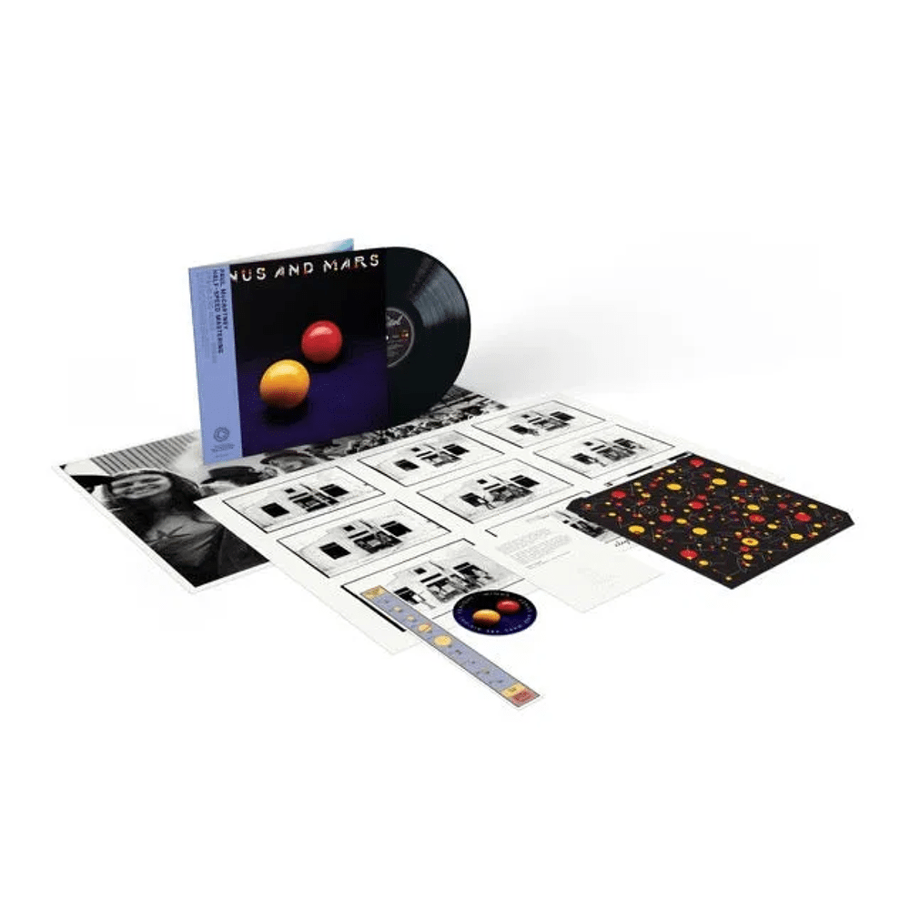 To celebrate the 50th anniversary of Venus and Mars, this special vinyl edition was cut at half speed using a high-resolution transfer of the original master tapes from 1975 by Miles Showell at Abbey Road Studios. The album is presented as a meticulous reproduction of the original UK pressing, with recreations of the original “Venus and Mars are alright tonight” circular sticker and “comparative sizes of sun and planets” bookmark sticker, and comes with two posters with photography by Aubrey Powell and Sylvia de Swaan. The iconic album artwork by Hipgnosis has been meticulously recreated and presented in a gatefold sleeve.