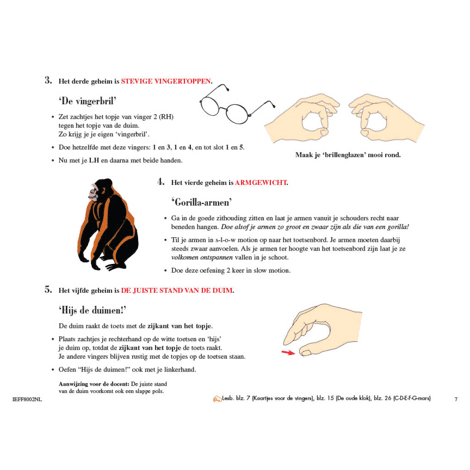 Ten eerste ontwikkelt de leerling technische vaardigheden door de toepassing van de “techniekgeheimen”. Vervolgens worden deze het ‘gereedschap’ voor muzikale expressie in pakkende etudes en voordrachtstukken.