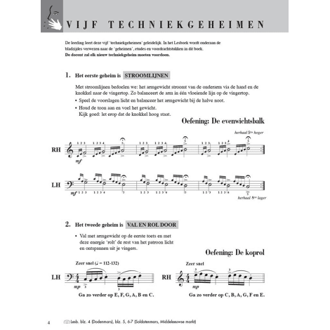 In het Lesboek deel 6 leren leerlingen het verband tussen gelijknamige majeur- en mineurtoonsoorten en ze ontwikkelen vlot en vloeiend spel. Zij gebruiken hun basiskennis van harmonie bij het memoriseren en hun muzikale creativiteit. Voorbereidende oefeningen met de cadensen en de hoofdakkoorden maken de leerling klaar voor een genuanceerde uitvoering in elke toonsoort. Integratie van de juiste techniek voor arm, pols en vingers biedt de basis voor virtuoos en expressief pianospel.